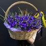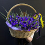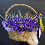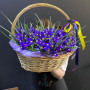 101 синий ирис в плетенной корзине в Ряжске