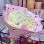 На фото букет из 31 белой розы. В составе: роза 31 шт, крафт-бумага 1 шт, атласная лента 1 шт, . Все цветы свежие и ароматные, букет красиво оформлен и отлично подходит для подарка. Доступна доставка цветов или самовывоз.