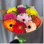 На фото букет из разноцветных гербер. В составе: гербера 9 шт, писташ 2 шт, крафт-бумага 1 шт, атласная лента 1 шт, . Все цветы свежие и ароматные, букет красиво оформлен и отлично подходит для подарка. Доступна доставка цветов или самовывоз.