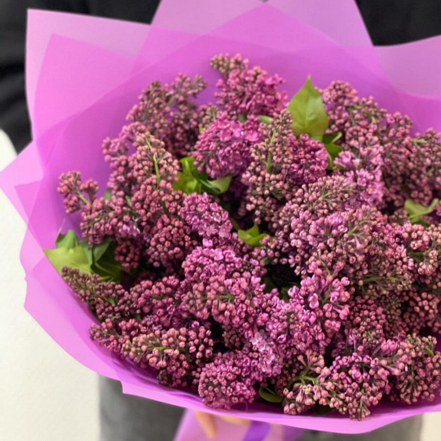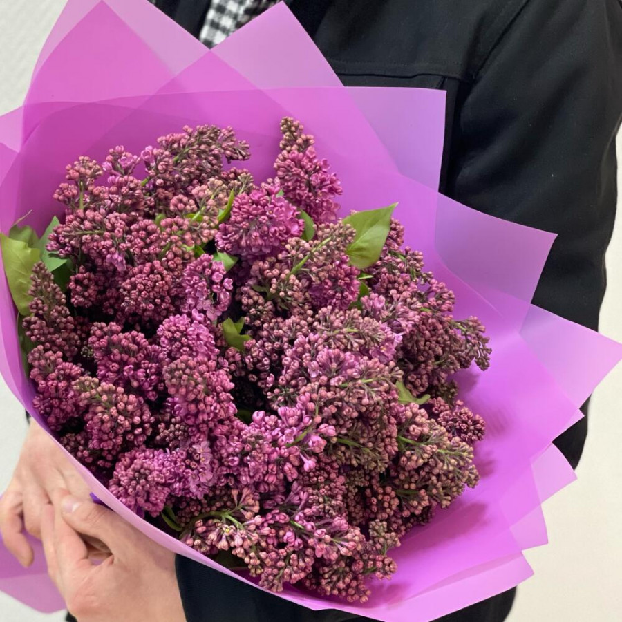 На фото букет свежей ароматной сирени. В составе: сирень 21 шт, дизайнерская упаковка 3 шт, атласная лента 2 шт, . Все цветы свежие и ароматные, букет красиво оформлен и отлично подходит для подарка. Доступна доставка цветов или самовывоз.